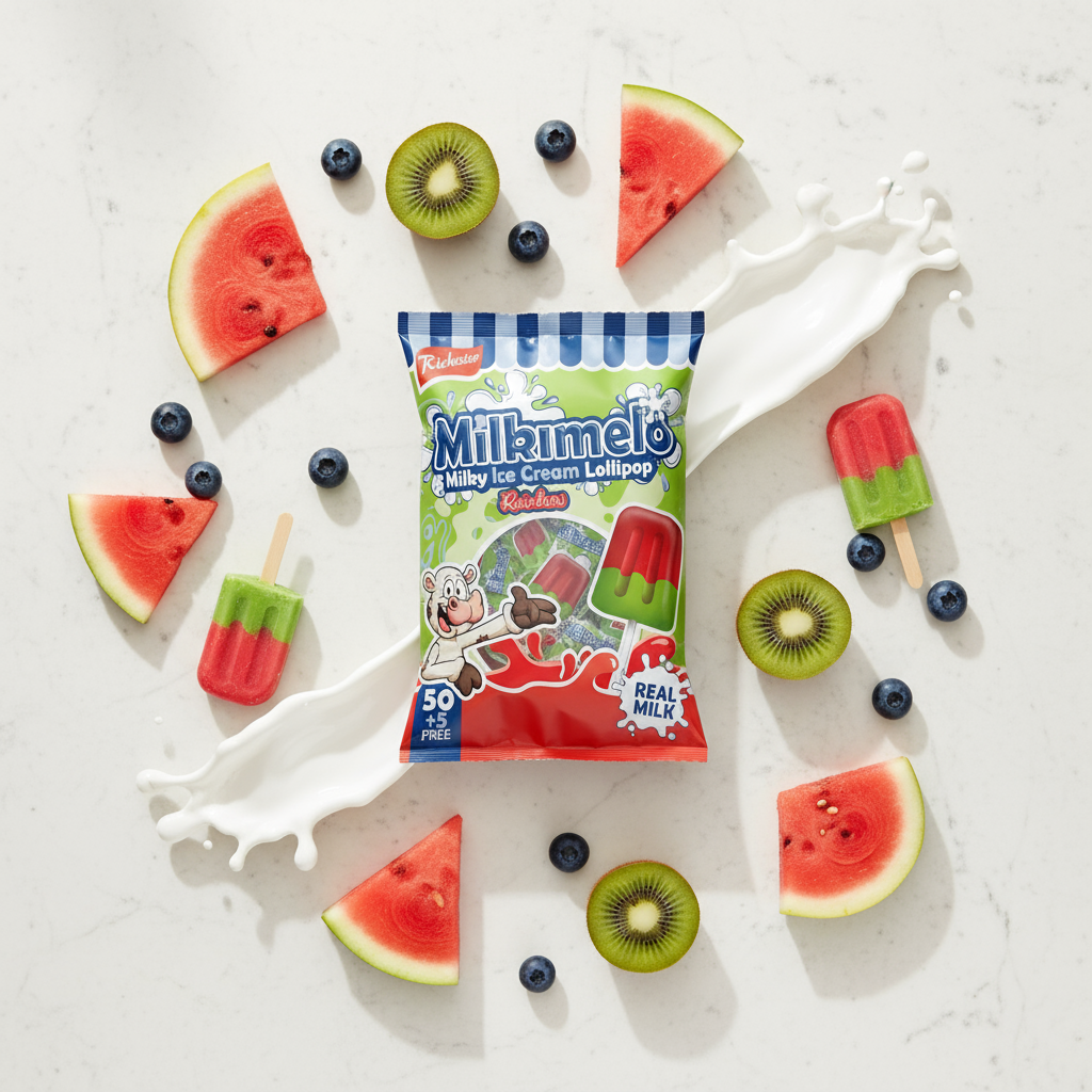 Milkimelo Rainbow Magic 55’s are whimsical, rainbow-coloured lollipops with a creamy fruity flavour—perfect for parties, gifting, and sweet cravings.