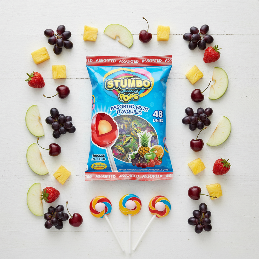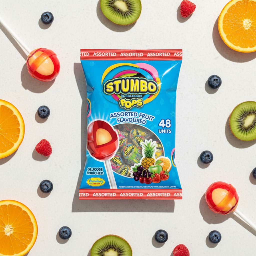 Each pack contains 48 chewy bars in assorted fruity flavours, offering great value for home stocking, party packs, or resale. Whether tucked into lunchboxes, handed out at events, or displayed on sweet counters, Stumbo is always a hit.